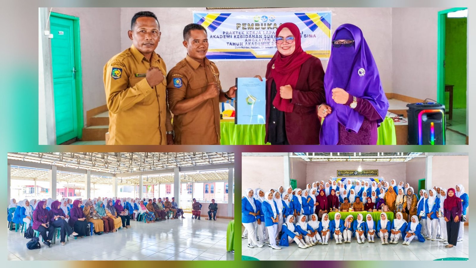 Prosesi penyerahan mahasiswa diserahkan langsung oleh Ketua Pembina Yayasan Hj. Emiyati, SE, bersama Direktur Bdn. Nurul Qomarya, SST.,M.Kes, dan disaksikan oleh perwakilan Camat Palibelo, jajaran Puskesmas Palibelo, Kepala Desa Roi, dan tokoh masyarakat setempat.