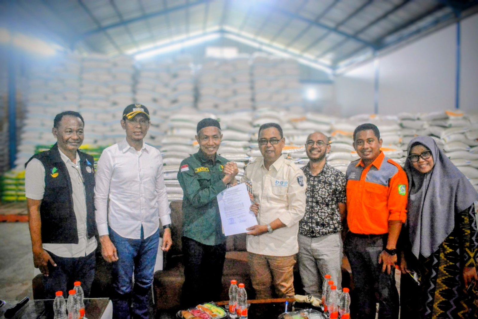 Penyerahan simbolis 20.490 kg Beras CPPD kepada 2.049 KK terdampak bencana hidrometeorologi di lima kecamatan Kabupaten Bima oleh Kepala Dinas Ketahanan Pangan Provinsi NTB, Dr. H. Aidy Furqan, M.Pd, Kamis (11/12/2025).