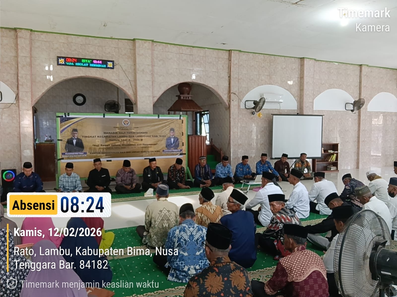 Bima, Garda Asakota.-Bimbingan Manasik Haji tingkat Kecamatan Lambu Kabupaten Bima dilaksanakan selama 4 hari, yaitu tanggal 12, 13, 14, dan 16 Februari 2026, diikuti oleh 82 orang Calon Jamaah Haji (CJH) dari Kecamatan Lambu dan Langgudu. Kegiatan ini bertempat di Masjid Besar Arrahmah Desa Rato Kecamatan Lambu.