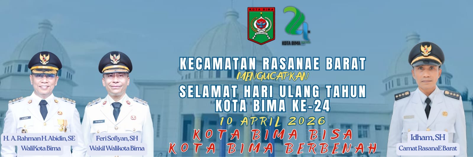 Camat Rasanae Barat, Idham, S.H, Beserta Jajaran Mengucapkan Selamat HUT ke 24 Kota Bima 10 April 2026