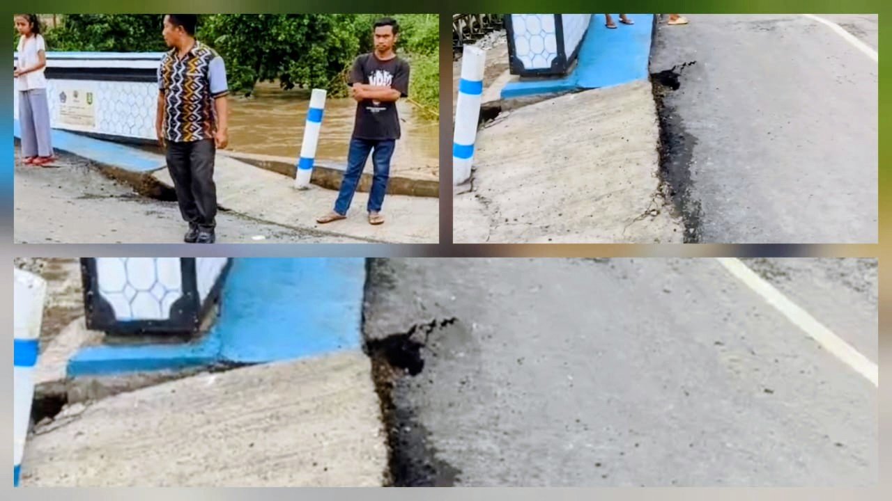 Keretakan tersebut menjadi tanda kuat bahwa kualitas pengerjaan proyek patut dipertanyakan. Bagian aspal mulai terkelupas, dan beberapa penyangga beton tampak rusak akibat derasnya arus air. Warga merasa khawatir; jika banjir terus melanda, jembatan tersebut dapat ambruk.