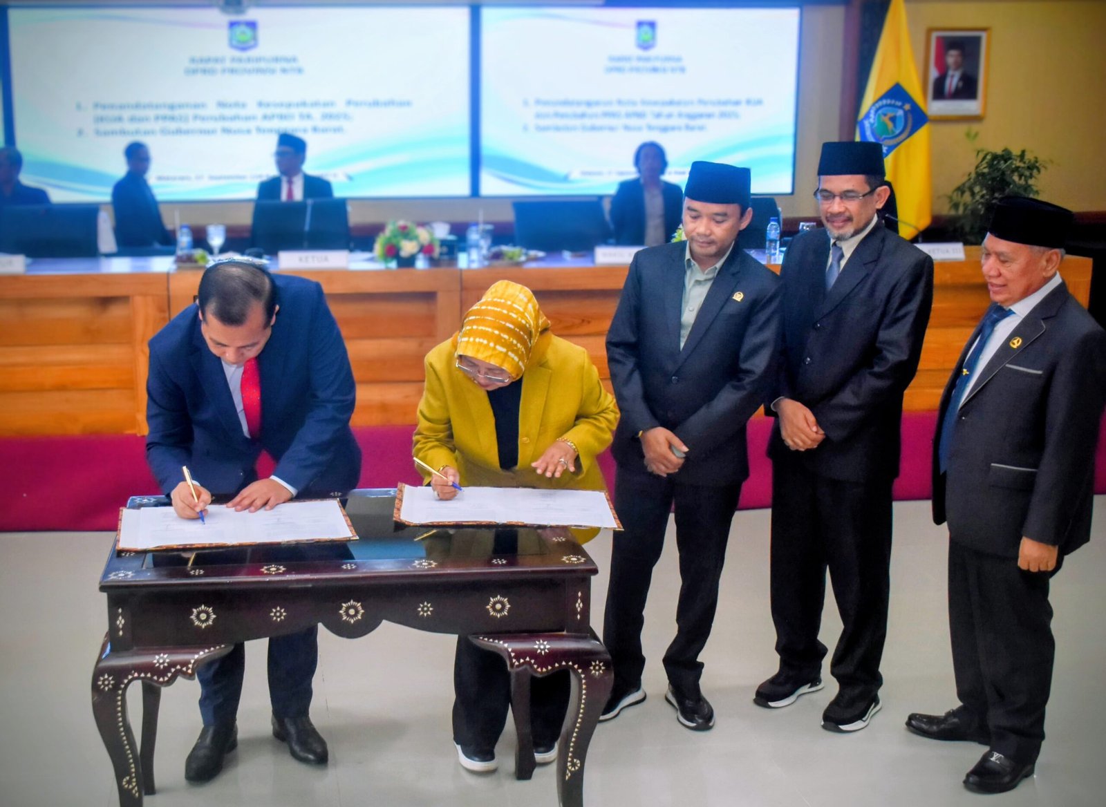 Gardaasakota.com.-Gubernur dan Pimpinan DPRD NTB akhirnya menyepakati Nota Kesepakatan Kebijakan Umum Anggaran dan Plafon Prioritas Anggaran Sementara (KUA PPAS) APBD Perubahan Tahun Anggaran 2025 pada saat rapat Paripurna DPRD NTB yang digelar Rabu 17 September 2025 diruang rapat Gedung Rinjani Kantor Gubernur NTB.