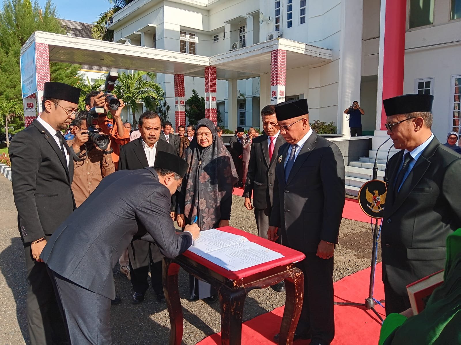 Gardaasakota.com.-Mengawali tahun 2026, Walikota Bima, H. A. Rahman H Abidin, S.E, didampingi Wakil Walikota Bima, Feri Sofiyan, S.H, secara resmi melantik Drs. H.M. Fahrunraji, M.E, sebagai Sekretaris Daerah (Sekdakot) Kota Bima yang baru. Prosesi pelantikan yang berlangsung di halaman kantor Walikota Bima, Senin (5/1/2026), diawali dengan doa dan pembacaan SK Walikota Bima oleh Kepala BKPSDM, Ruslan, S.E, M.M.