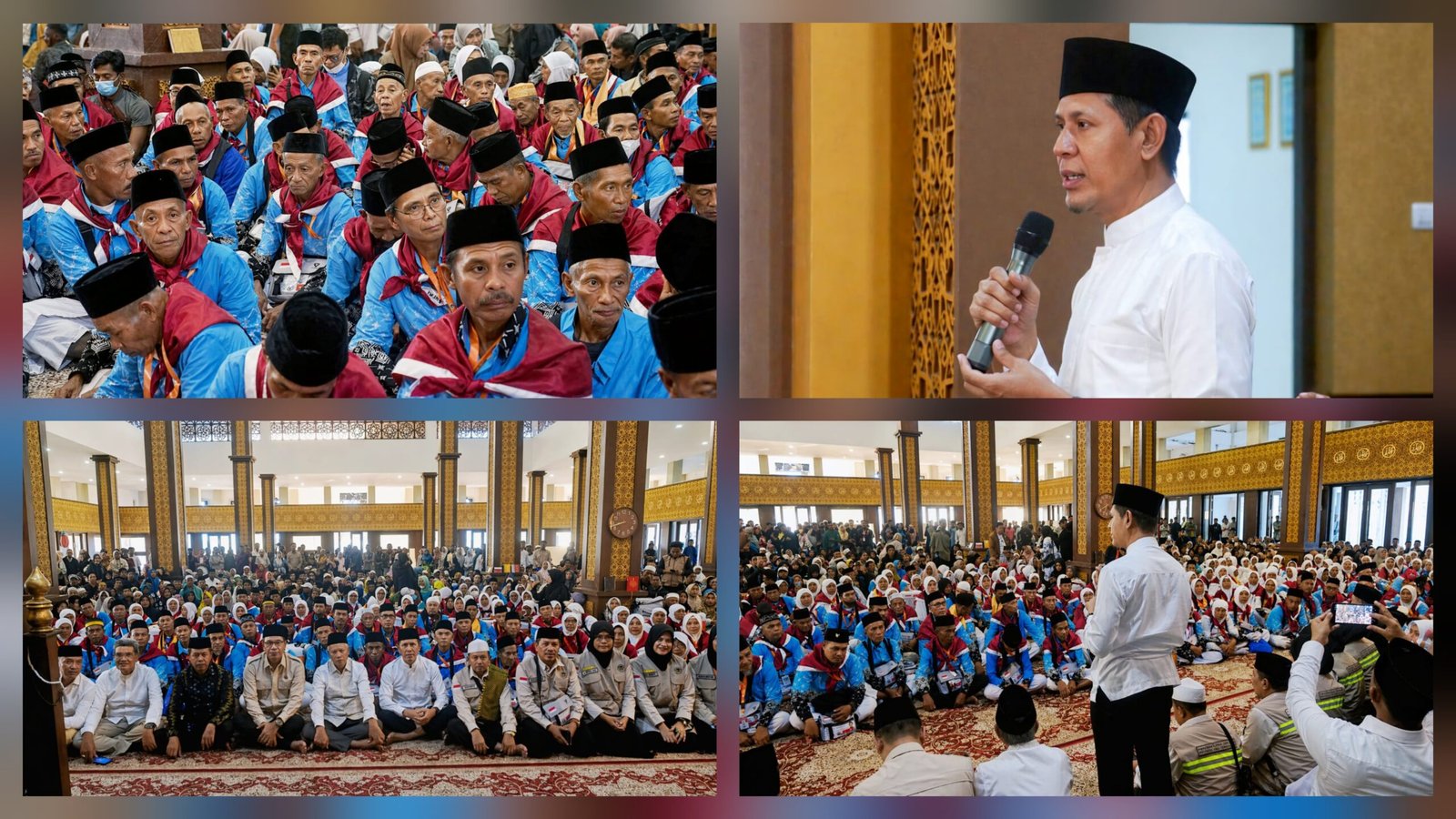 Suasana pelepasan 393 jamaah calon haji (JCH) Kloter 4 asal Kabupaten Bima oleh Wakil Bupati Bima dr. H. Irfan Zubaidy di Masjid Agung Kabupaten Bima, Jumat (24/4/2026).