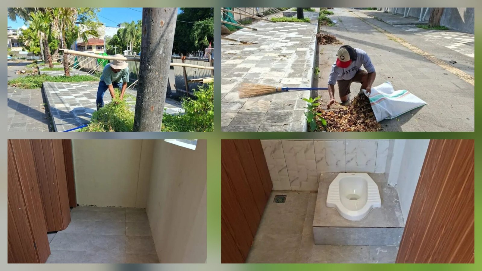 Petugas sedang melakukan pembersihan di area proyek lapangan Serasuba yang masih dalam masa pemeliharaan.
