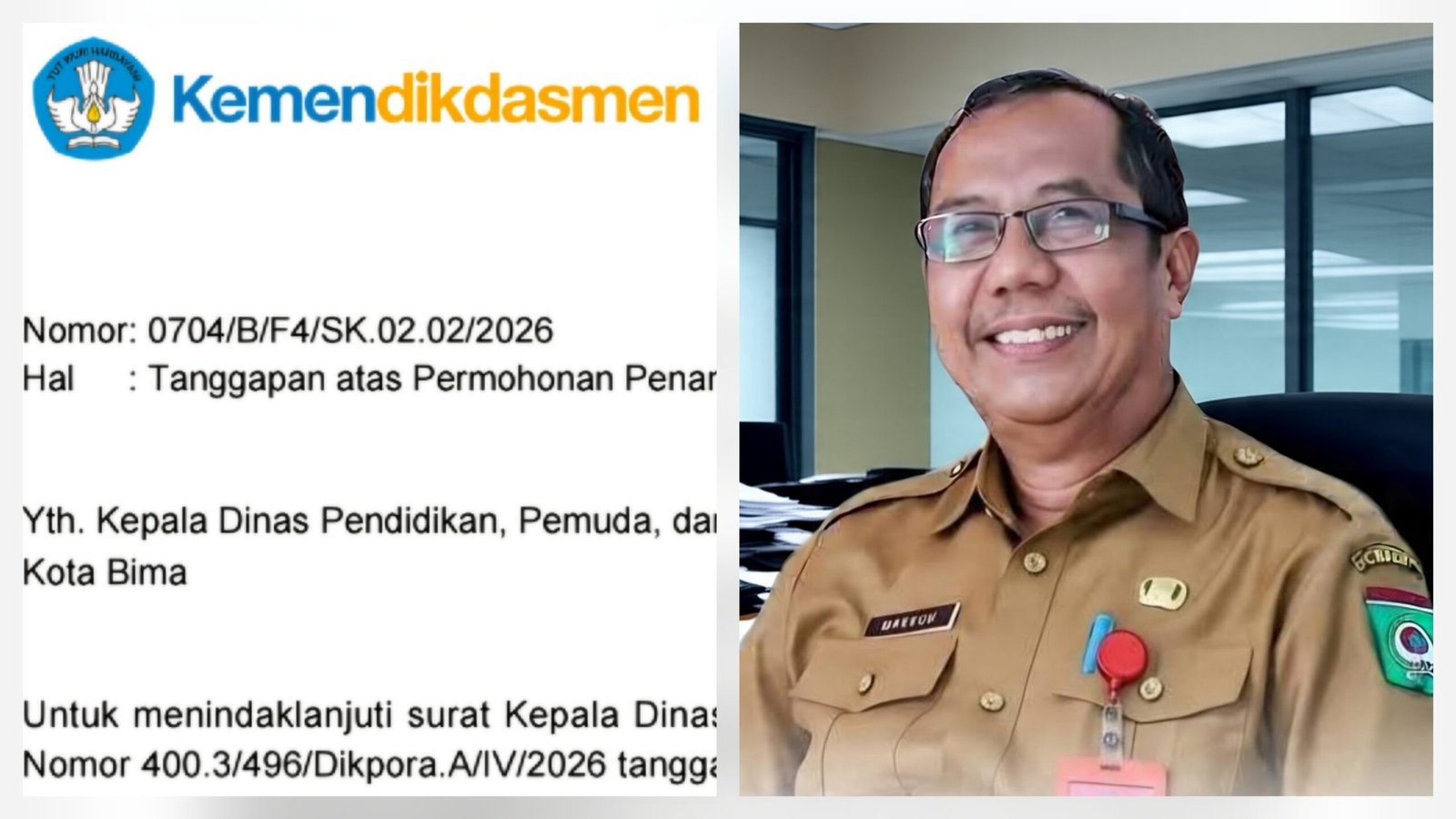 Menanggapi hal ini, Kadis Dikpora Kota Bima, Drs. H. Mahfud, M.Pd, menegaskan bahwa surat dari Pusat Asesmen Kemendikdasmen itu menjawab untuk semua dan diharapkan menjadi perbaikan untuk kedepannya supaya hal seperti itu tidak terulang kembali.
