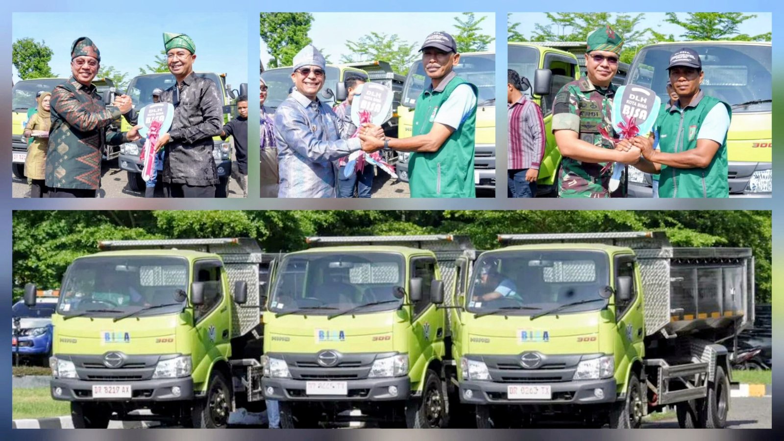 Gardaasakota.com.-Walikota Bima, H. A. Rahman, SE menyerahkan 3 unit dum truck armada pengangkut sampah usai Upacara Peringatan Hari Sumpah Pemuda di Halaman Kantor Wali Kota, Selasa (28/10/2025).