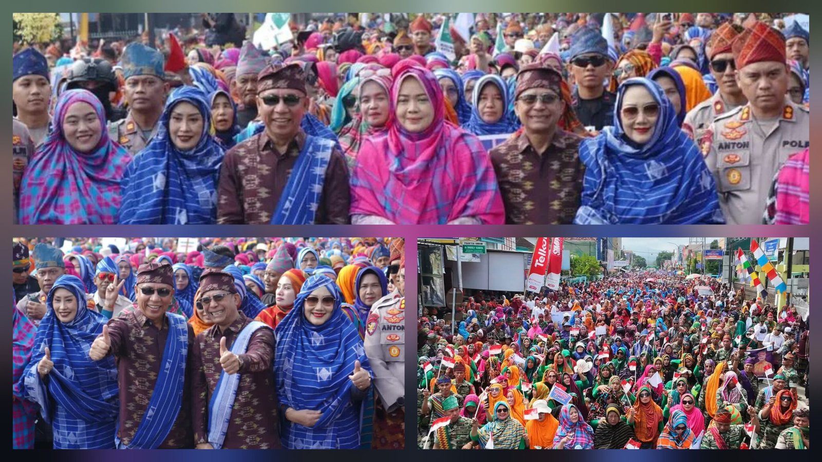 Wagub NTB, Hj. Indah Dhamayanti Putri, S.E, M.IP, Walikota Bima H A Rahman H Abidin, S.E, dan Wawali Feri Sofiyan, S.H, dan Forkopimda, berbaur bersama peserta Pawai Rimpu Mantika 2026 di Jl. Soekarno-Hatta. Lautan Tembe Nggoli dan Sambolo khas Bima pecahkan rekor KEN 2026. Pemkot sampaikan terima kasih dan mohon maaf atas kekurangan, siap evaluasi total untuk 2027. Foto: Ist